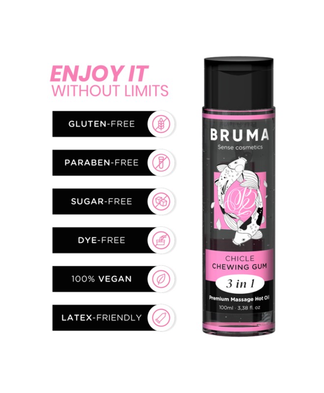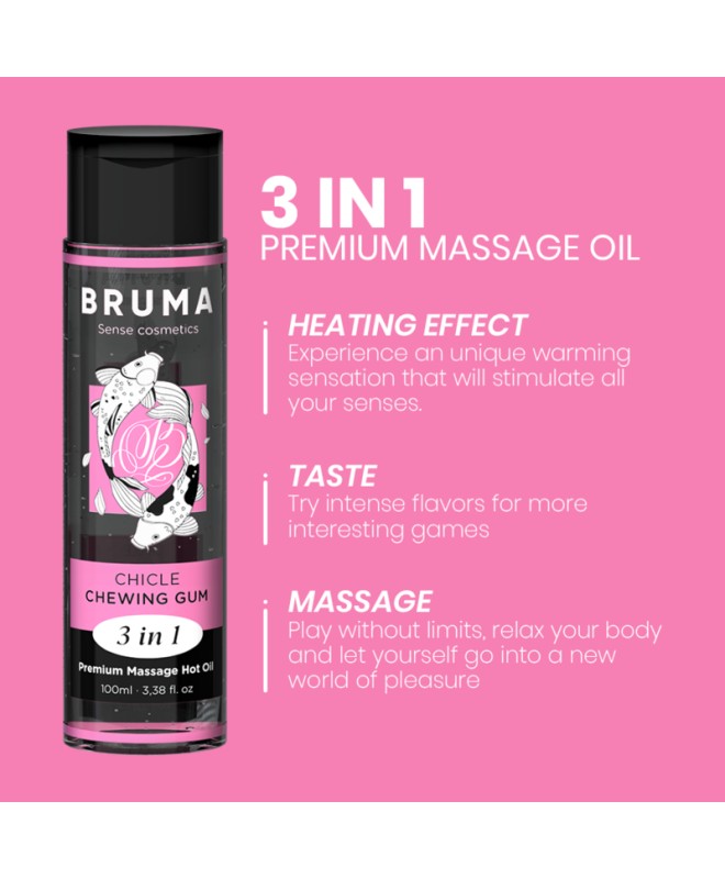 L'Huile de Massage Premium Effet Chaleur au goût bubblegum de la marque BRUMA est une véritable pépite dans l'univers du bien-être et de l'intimité. Ce produit exquis, présenté dans un élégant récipient de 100 ml, est conçu pour offrir une expérience unique et sensuelle, en offrant un massage relaxant et stimulant avec une touche de chaleur qui le rend encore plus spécial. Voici les faits saillants développés en détail :