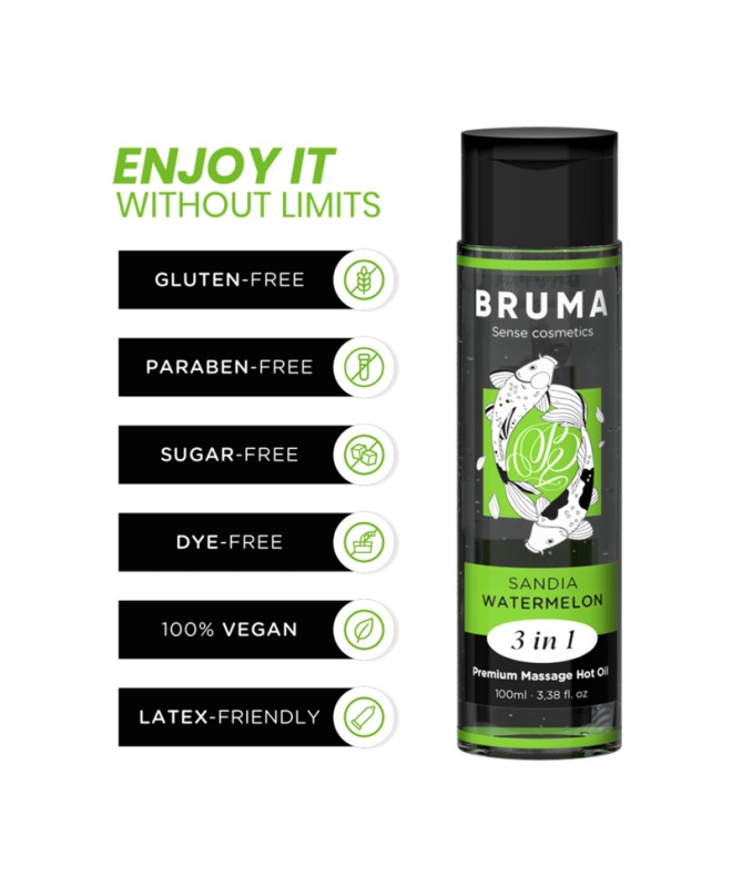 L'Huile de Massage Premium Effet Chaleur saveur de pastèque de la marque BRUMA est une véritable pépite dans l'univers du bien-être et de l'intimité. Ce produit exquis, présenté dans un élégant récipient de 100 ml, est conçu pour offrir une expérience unique et sensuelle, en offrant un massage relaxant et stimulant avec une touche de chaleur qui le rend encore plus spécial. Voici les faits saillants développés en détail :