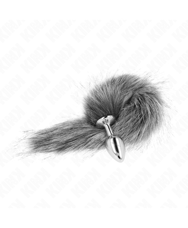 KINK - PLUG ANAL TAILLE S 7 X 3 CM AVEC QUEUE SYNTHÉTIQUE 40 CM GRIS
