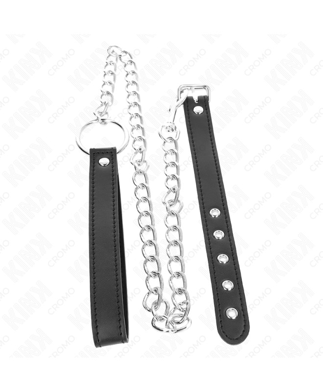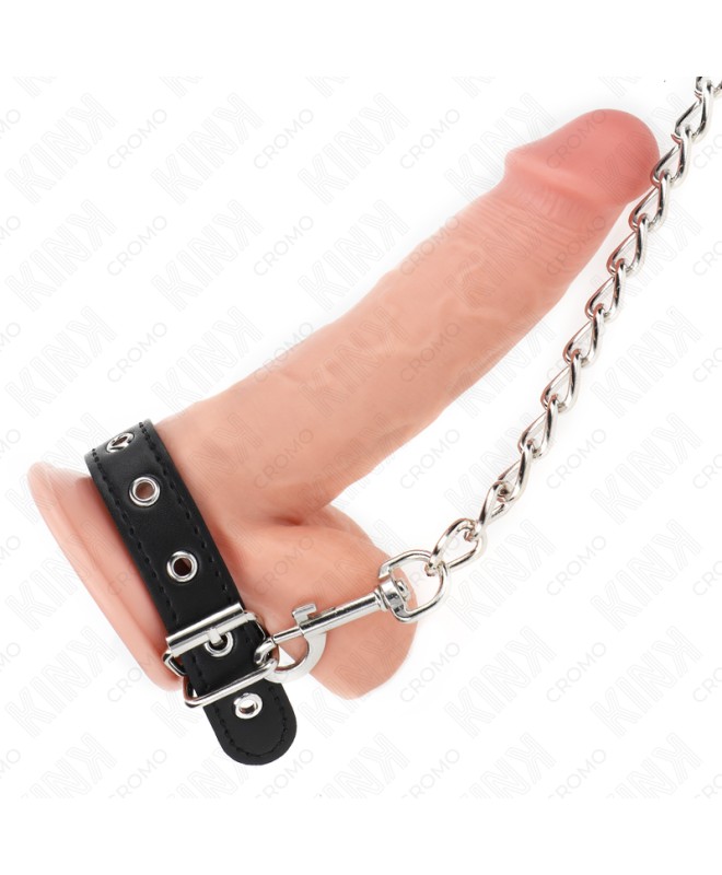 KINK - ANNEAU PÉNIS EN CUIR 21,5 X 2 CM AVEC CHAÎNE EN MÉTAL DE 60 CM ET SANGLE EN CUIR