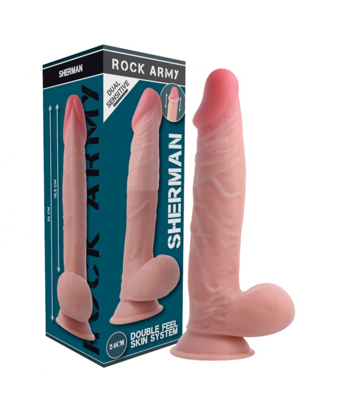Le Sherman Dual Density est un gode agréable et réaliste de la collection Rock Army, conçu pour atteindre tous vos points intimes.