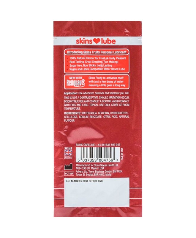 SKINS - LUBRIFIANT FRUITÉ À BASE D'EAU FRAISE DOSE UNIQUE 5 ML