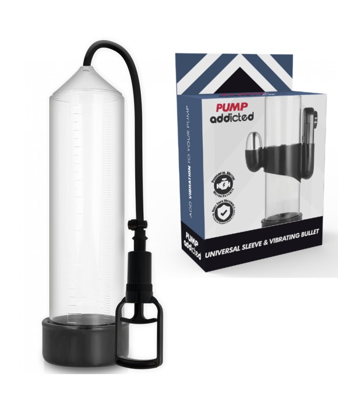 Pump Addicted aide à obtenir une érection de manière plus simple grâce à un système de vide qui provoque la concentration du sang dans le pénis lorsqu'il est encore flasque. L'érection est obtenue et maintenue grâce à un joint confortable et hermétique à la base du corps, juste à la jonction du pénis avec le pubis, grâce auquel le sang est retenu dans le tronc. Grâce au manchon, le joint est ferme, confortable et étroit sans serrer.