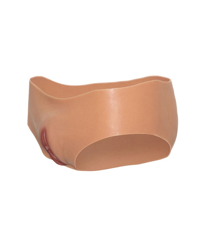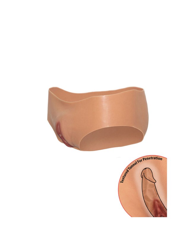 Ce vêtement est doté d'un vagin ouvert avec un tunnel interne texturé, conçu avec soin pour intensifier les sensations et offrir un réalisme saisissant. À l'intérieur du slip, un tube souple et flexible s'adapte confortablement au pénis, assurant stabilité et confort lors de l'utilisation. Ce tube se termine par une ouverture supérieure fonctionnelle, permettant d'uriner sans retirer le vêtement, ce qui ajoute à la praticité et au confort de sa conception.