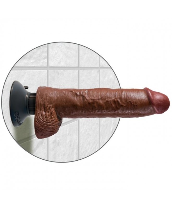 KING COCK - GODE VIBRATEUR AVEC TESTICULES 25.5 CM COULEUR MARRON