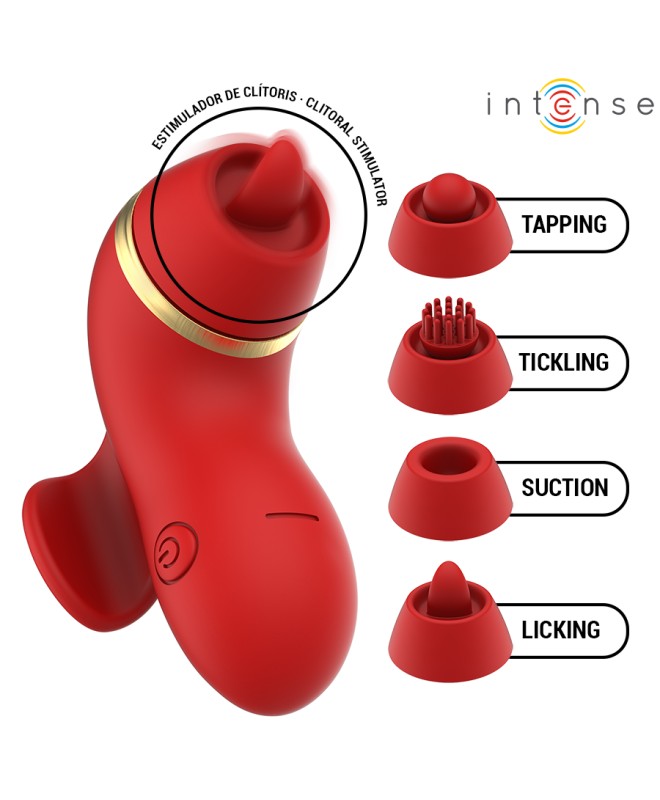 INTENSE - PATTY STIMULATEUR AVEC 4 TÊTES : SUCCION, TAPOTER, GRIFFER ET LÉCHER